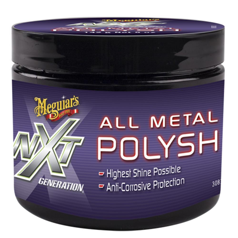 Meguiar 's NXT Generation All Metal Polysh čistí, leští a chráni všetky kolesá, nerezové výfuky, chrómové sania, ventilové veká a všetky ostatné diely z hliníka, mosadze, medi, striebra a ďalších kovov. Meguiar 's technológia MDAT (Microscopic Diminishing Abrasive Technology) odstraňuje oxidáciu a škvrny rýchlejšie a bezpečnejšie, než obyčajné brúsne prípravky.