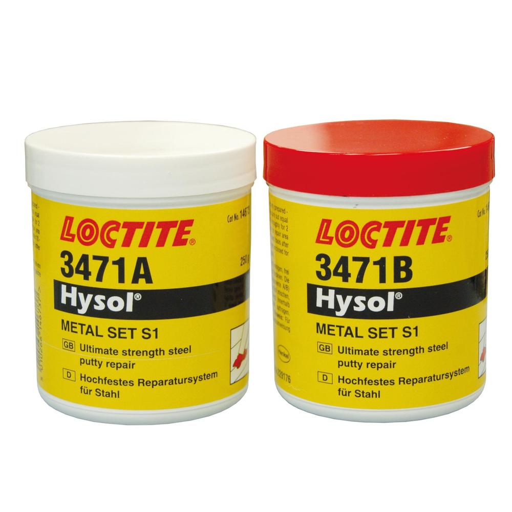 2-zložkový oceľou plnený neroztekavý tmel na opravy. Vytvrdzuje do konečného povrchu podobného kovom a môže sa obrábať, vŕtať, brúsiť alebo pilovať. LOCTITE® EA 3471 je šedý 2-zložkový oceľou plnený epoxidový tmel s jednoduchým použitím bez potreby ohrievania alebo zvárania. Jeho typické použitie zahŕňa opravu nekonštrukčných vád z odliatkov, výrobných prípravkov a príslušenstva, tesniacich nádob, nádrží a ventilov, obnovenie tesniacich plôch a vyplnenie kavitovaných častí. Typicky je používaný pri prevádzkovej teplote od -30 do +105°C. Výhody - po vytvrdnutí povrchová vrstva podobná kovu - vynikajúca priľnavosť na kovové povrchy - dobre lepí všetky kovové materiály - netečie a nezmršťuje sa - Tesní trhliny v nádržiach, odliatkoch, nádobách a ventiloch. - Opravuje nekonštrukčné chyby v oceľových skriniach. - Obnovuje povrch opotrebovaných vzduchových tesnení. - Opravuje jamkovitosť spôsobenú kavitáciou a/alebo koróziou. Technické údaje - Doba použiteľnosti: 45 min. - Doba spevnenia: 180 min. - Pevnosť v šmyku (GBMS): 20 N/mm² - Pevnosť v tlaku: 70 N/mm² - Rozpätie prevádzkovej teploty: -20 °C až +120 °C - Veľkosť balenia: 500 g nádobka