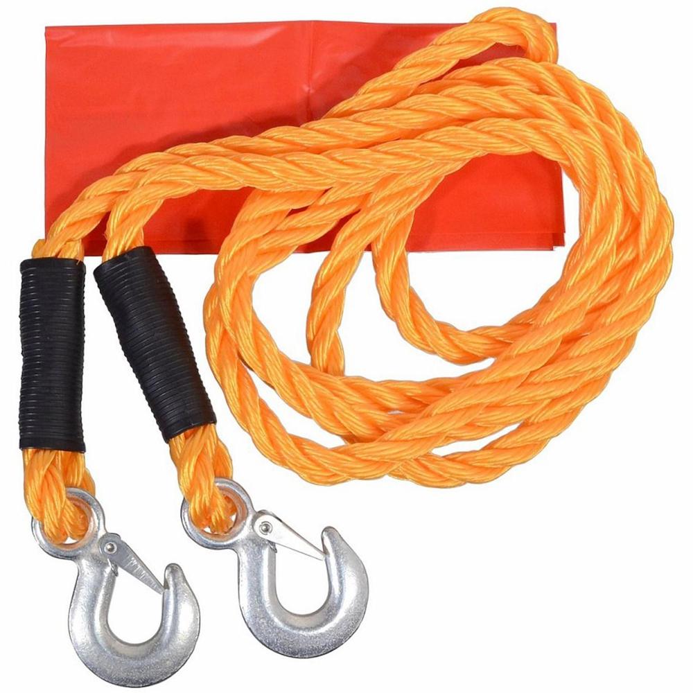 LANO ŤAŽNÉ do 5000 kg Ťažné lano pre osobné automobily do celkovej hmotnosti 5000kg. Nesmie byť používané ako vyprosťovacie. Pri vlečení nemôže dochádzať k poškodzovaniu odieraním od ťažného alebo vlečeného osobného automobilu. Vlečené vozidlo nesmie mať defektný brzdový systém. Lano je zakončené kovovými skobami a červenou zástavkou. Dĺžka: 4m Priemer: 18mm