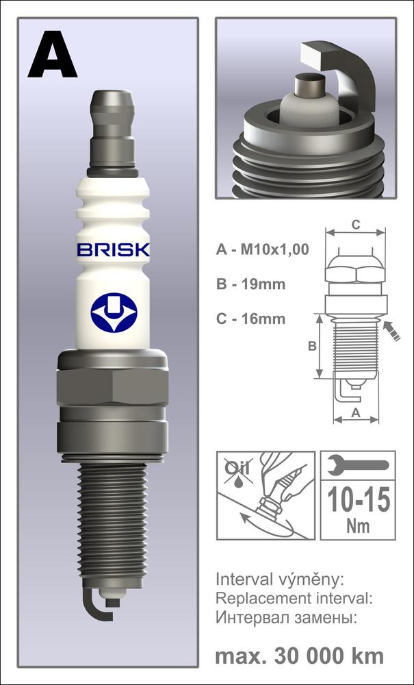 Širokorozsahová ZAPAĽOVACIA SVIEČKA AR14YC-9 Super Širokorozsahové zapaľovacie sviečky so strednou elektródou s medeným jadrom. Jedna vonkajšia elektróda a stredná elektróda so zvýšenou tepelnou vodivosťou. Veľká plocha špičky izolátora zaisťuje dokonalú funkciu pri malom zaťažení. Veľké množstvo aplikácií umožňuje osadenie väčšiny motorov a vozidiel na svetovom trhu. Charakteristika :jedna vonkajšia elektóda stredná elektróda s medeným jadrom Použitie :vozidlá používajúce olovnatý a bezolovnatý benzín vozidlá s dlhým intervalom výmeny zapaľovacích sviečok Druh prevádzky :mestská prevádzka striedanie mestskej prevádzky a diaľničnej prevádzky Interval výmeny : max.30.000km VYSVETLIVKY K TABUĽKE: * zákazková výroba P tesnení podložkou K tesnenie kužeľom typ kód na zákazku elektródová vzdialenosť tesnenie interval rozmer kľúče dĺžka závitu závit doporučený uťahovací moment AR14YC-91946 0,9 P max. 30.000 km 16 mm 19 mm M 10x1,00 10-15 Nm VYSVETLIVKY K TABUĽKE: * zákazková výroba P tesnení podložkou K tesnenie kužeľom Výrobca označenie BRISK BRISK CODE DENSO U22EPR9 AR14YC-9 1946 HONDA 31917-KPH-901 AR14YC-9 1946 KAWASAKI 92070-0022 AR14YC-9 1946 KAWASAKI E 9207 00022 AR14YC-9 1946 NGK 3901 AR14YC-9 1946 NGK CPR7EA-9 AR14YC-9 1946 YAMAHA 94700-00420 AR14YC-9 1946 YAMAHA 94701-00420 AR14YC-9 1946 YAMAHA 94703-00420 AR14YC-9 1946 TABUĽKA ZHODY Upozornenie !!! Porovnávacie tabuľky sú len informatívne !!! Pre správny výber zapaľovacích alebo žeraviacich sviečok je potrebné sa riadiť odporúčaním v aplikačných tabuľkách katalógov BRISK.