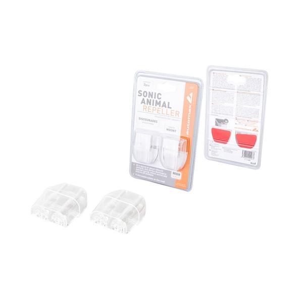 Pomáha redukovať nehody spôsobené so stretom s divou zverou. Odplašovač zveri pomáha chrániť vaše vozidlo a jeho cestujúcich pred nebezpečnými zrážkami s jeleňmi a inými zvieratami, ktoré môžu byť v blízkosti vozovky. Pri rýchlostiach vyšších ako 60hm/h začne prúdiť vzduch cez pohybujúce sa vozidlo a tym pádom aj cez odplašovač zveri. Rozmery: 40 x 50 x 20 mm Jednoduchá montáž nalepením Počas jazdy produkuje veľmi vysoký tón, ktorý divú zver odradí od príchodu do blízkosti vozovky Plašič funguje na princípe píšťaly, tá vydáva pri jazde nepretržitý vysokofrekvenčný tón nad prahom počuteľnosti, ktorý odháňa účinne zver pred vstupom do vozovky. Plašič zveri namontujte na prednú časť vozidla na také miesto, aby bolo za jazdy pod náporom vzduchu, napríklad do otvorov alebo prelisov v prednom nárazníku. Širšia strana trubice musí smerovať pred vozidlo.